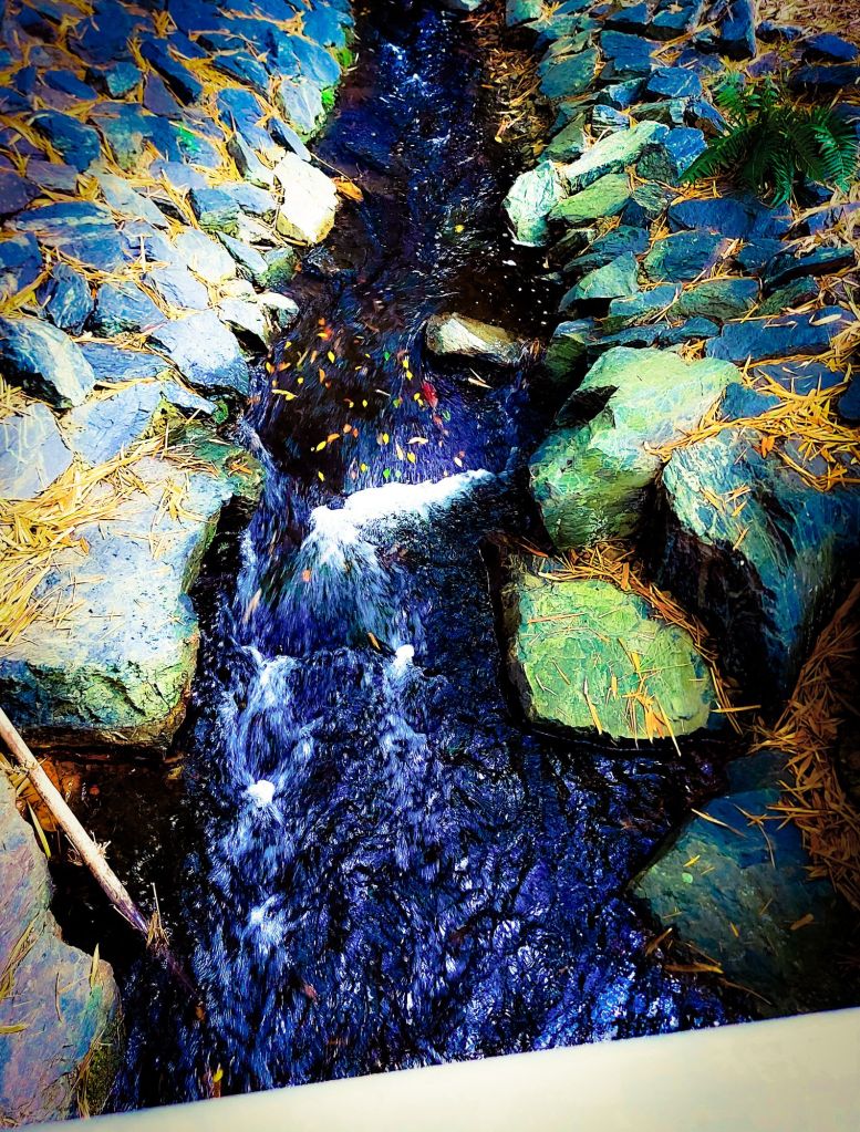 She seemed to favour one of the streams in particular. The one where its bridge looked over the neatly-edged black stones, divided by the rushing water.